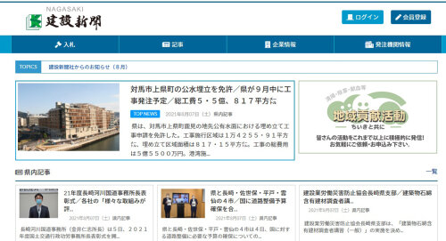トップページには、県内はもちろん、全国の最新の注目記事のほか、入札や発注機関の更新情報を紹介。地域貢献活動の記事は、より幅広い発信ができるよう、読者以外の方にも読んでいただけます。